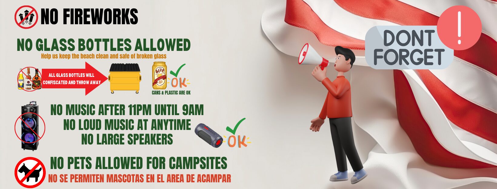 For adventure, we have campsites on the beach. All sites come with picnic tables and fire rings.